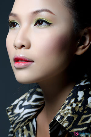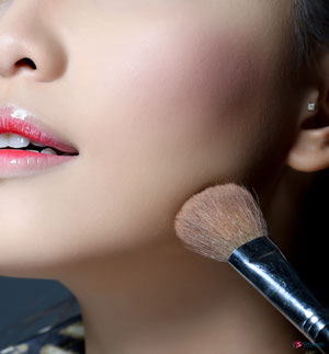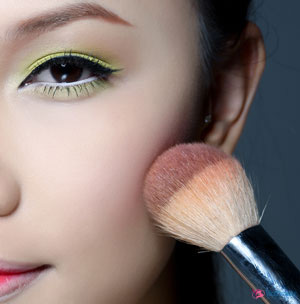 3. Má hồng: Thông thường, ta tán má hồng xéo từ gò má lên tới mang tai, nhưng với khuôn mặt dài, ta xác định đỉnh của má hồng bằng cách hơi mỉm cười, phần nhô lên cao sẽ là đỉnh của gò má. Khi đó, ta đặt cọ má hồng tán từ đỉnh gò má kéo ngang vào tới mang tai. Không nên đánh xéo vì đánh kiểu này làm cho khuôn mặt thon gọn và trông dài hơn.