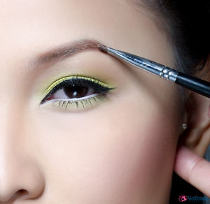 2. Chân mày: Đối với khuôn mặt dài, ta nên vẽ nét chân mày ngang để kéo ngắn chiều dài của khuôn mặt lại. Tránh vẽ chân mày cong vì khi đó khuôn mặt sẽ bị kéo dài ra.