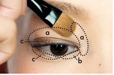 Vùng c: Tạo đường viền cho mi trên và mi dưới bằng màu nâu tối.