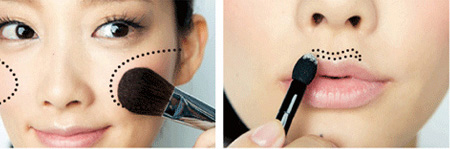 Sử dụng phấn má màu cam đỏ và chải theo chiều nằm ngang, sẽ tăng thêm hiệu ứng cho làn da tràn đầy sức sống.