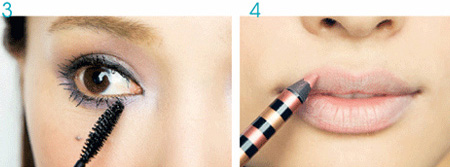 Vẽ viền môi nhẹ nhàng với bút kẻ có tông gần với màu tự nhiên. Sau đó tô màu và thêm một lớp son bóng lên trên cùng.