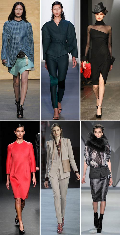 Các show diễn thu đông 2012 tập trung vào những đường cắt tạo khối tạo nên thiết kế mang hơi thở của kiến trúc, đem đến đẹp rất mạnh mẽ và cá tính.